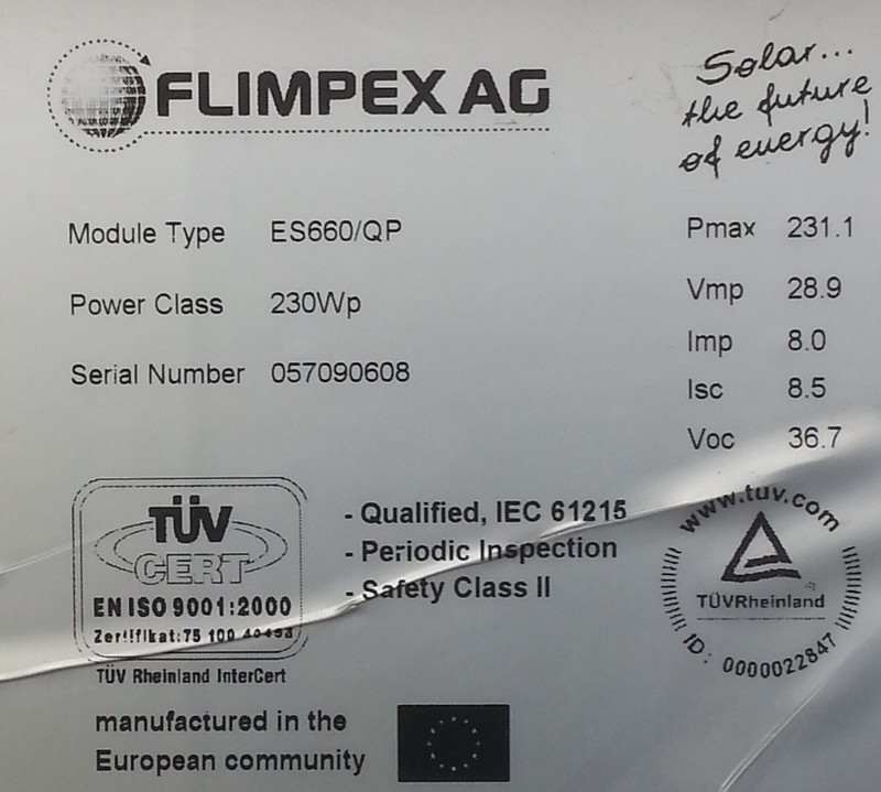 Vmp; Imp; Isc; Voc sind Werte die von der derzeitigen Verschaltung der einzelnen Stränge des Moduls abhängen, zB. 72 Zellen in Reihe = 36V welche sich bei nicht wenigen Modulen problemlos ändern lässt, wenn eben der Klemmkasten nicht vergossen ist in dann zB.2x36 Zellen in Reihe = 18V ,die zwei parallel macht immer noch 18V mit dann doppelten Imp;Isc