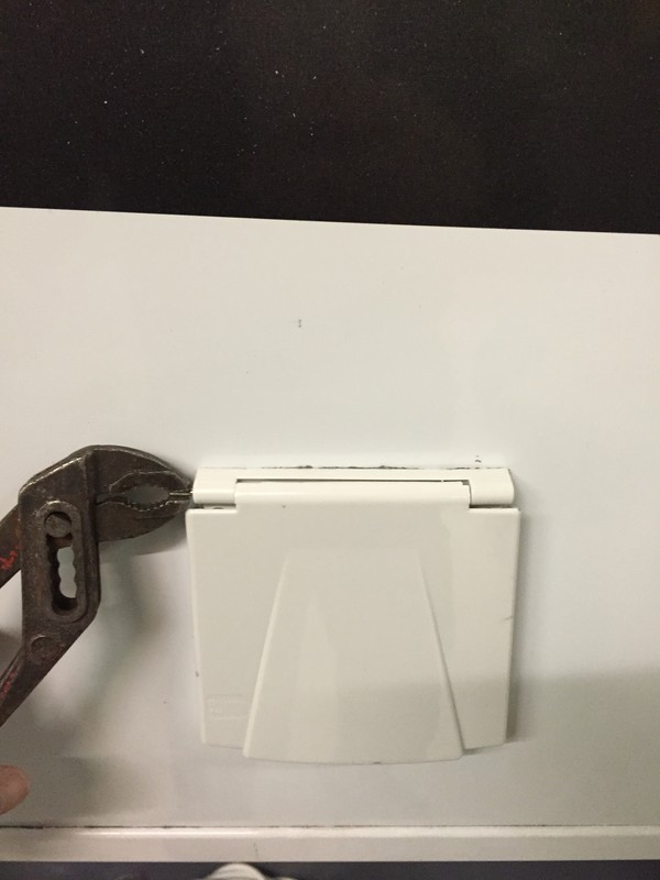 3. Stift mit einer Pumpenzangen rausziehen, vorsichtig arbeiten, sonst gibt´s böse Kratzer an der Womowand, evtl Pappe o.ä. zwischenlegen