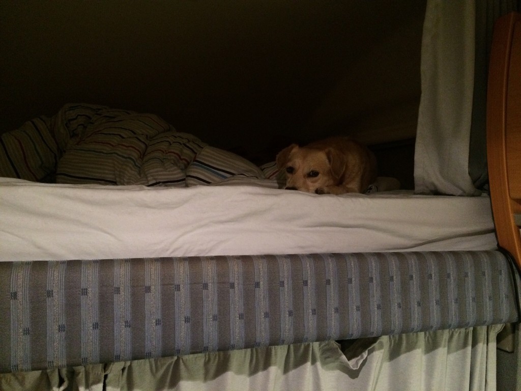Ein weiterer Gradmesser (im wahrsten Sinne des Wortes) war unser Hund, dem es auch wesentlich besser ging als in den Jahren zuvor, als wir noch den Alkoven hatten.