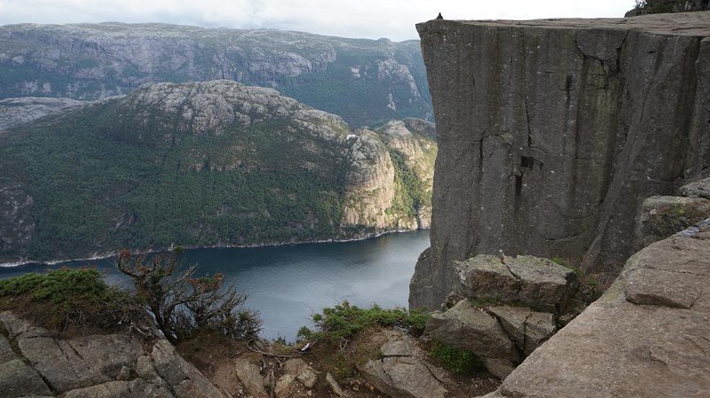 zu Fuß bergauf bis zu einer Höhe von 600 m über dem Meeresspiegel. 3 km zu Fuß dauert mehr als zwei Stunden. Zustand - ideal Schuhe, weil man schnell drehen das Bein. Top Blick auf den Fjord, wie üblich, der Kosmos. Ich habe Höhenangst, so gehe ich in die Kante des Regals nicht näher zu 2 Metern.