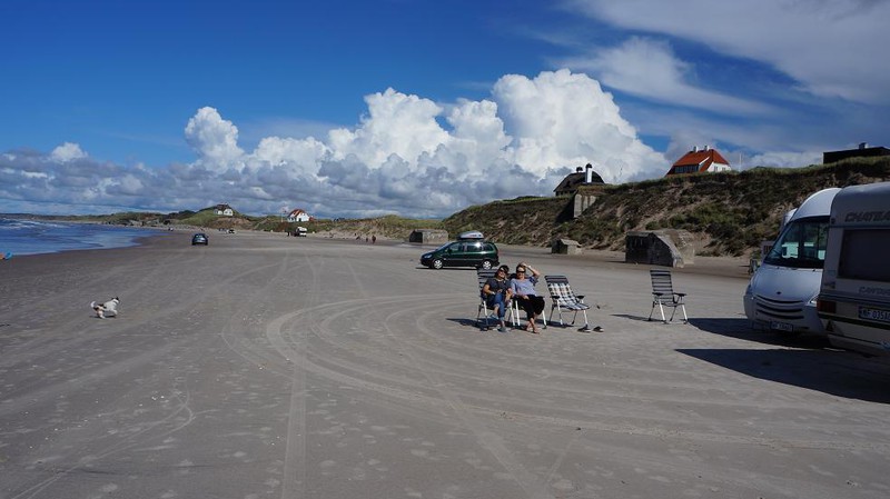 Natürlich fahren wir am Strand im Meer selbst. Nein Camping, aber zum Glück niemand Ansprüche. Am Abend gehen wir zum Strand, um nicht zu stören die Dänen geht. Wir haben zwei Hunde zusammen, so ist es ein bisschen laut.