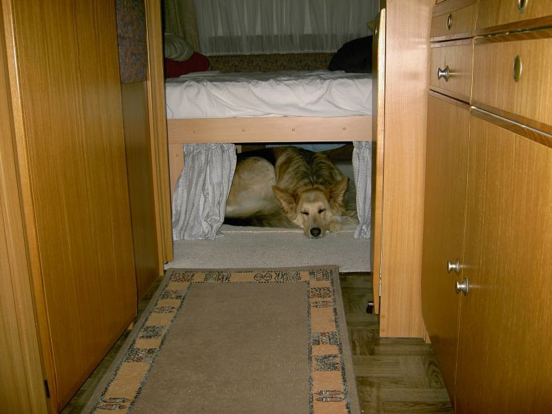 darauf wollte ich dir noch antworten, also in einem Womo mit drehbaren Vordersitzen kann dein Hund nicht in den Fußraum vom Beifahrer gelangen, dafür stehen die beiden Vordersitze einfach zu eng beieinander, bleibt der Platz unterm Tisch, da passt er als mittelgroßer Hund drunter. Ich schätze ihn auf knapp 60 cm? Meine kleine Hündin hat jedenfalls eine Schulterhöhe von 58 und passt unter den Tisch. Allerdings habe ich nur eine Halbdinette und es ist eng für sie, sie muss um das Tischbein drumherum. Und ich kann nie die Beine ausstrecken, denn da liegt ja meine Lilli. Da ist in dem von dir verlinkten Womo mit der L-Sitzecke mehr Platz. Auch wenn zB Kinder da sind, deren Beine reichen die ersten Jahre eh nicht auf den Boden, dann könnte euer Hund dort seine Decke hingelegt bekommen. Aufstehen gut und schön, nur wo soll er hingehen? Daher finde ich es schon wichtig, dass mein Hund einen festen Platz hat. Klar dürfen meine Hunde auch zB nachts woanders liegen, nur ist eben wenig Platz und unterm TIsch liegen glaube ich viele Hunde gerne, weil sie von dort beobachten können, was sich vor der offenen Womotür abspielt. FRankia ist schon einmal keine schlechte Wahl ! Ich denke für Euch wird der 650er zu klein sein , schaut lieber nach einem A700 --> Link Jan Fahrräder wären / sind bei mir eh hinten auf einem Träger. Die werden gut verpackt und reisen damit problemlos mit. Klar müsste die Tür geändert, bzw. eher sogar ganz ausgehangen werden. Für den Hund würde ich mir exact auf den Hund abgestimmt, eine extra Kiste in die Heckgarage bauen. So hat der Hund sein gemütliches, rundum verschlossenes (Tür natürlich draussen) Plätzchen und kann nicht von umfallenden, herabfallenden Sachen verletzt werden, die man halt in so einer Heckgarage hat. So ist der Hund "aufgeräumt" und alle haben ihren Urlaubsfrieden ohne das der Hund bei jedem Gang durchs Mobil, durch den WoWa, weggeschickt werden muss.. Aus meiner Erfahrung weiß ich, dass die Hunde solche "Höhlen" sofort und gerne annehmen. Ich habe die letzten 5 WoWa und WoMo in der Art umgebaut und werde es auch zukünfig so machen. So sieht das im WoWa aus. Hier noch unser alter, inzw. verstorbener Hund mit über 60cm Stockmaß. Rechts und links waren abgetrennt Staufächer. ![]() Hier waren vorher sogar Längsbetten verbaut, die ich rausgerissen und durch ein großes Doppelbett von 1,50x2m ersetzt habe. Moin, ich denke auch, dass der Frankia zu klein für Euch ist. Wir haben uns das Fahrzeug im Juli angesehen. Mit Hund würde ich das niemals kaufen. Außerdem haben wir den gerade gekauft. Der war schon im November in der engeren Wahl :D Einen Eura Terrestra 690 HB sehe ich noch als Alternative, ist aber 7m lang. Die Activas haben wir uns auch gesehen. Die sind leider nicht holzfrei. LG Fred noch ne kleine Ergänzung, da wir ja den von Dir gelisteten Eura Profila 660 HB hatten: Der Grundriss ist genial, aber auch der mit Hund zu klein. Ich würde keinen Ford mehr kaufen und auch keinen Aufbau mehr mit Holz. Beim Eura musst Du vor Allem auf Risse im Dach und auf die Fender achten! LG Fred