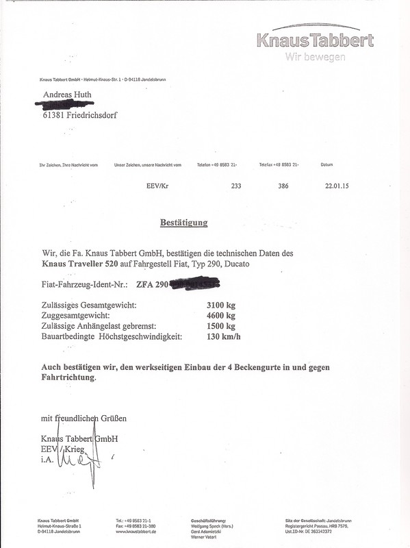 Kann ich nachvollziehen, da kommt einem die Galle hoch. Hallo Andreas, was mach Deine Zulassung ? Sooooooooooooo, es ist geschaft. Am Freitag zugelassen und am Wochenende gleich der 1. Ausflug mit Anhänger. Geht besser als gedacht. Danke an alle die Behilflich waren. Ich mach dann mal Bilder, damit ihr euch vorstellen könnt um was es bei mir geht. Andreas na dann Gratulation !!...wünsche euch immer Freude mit eurem Knaus. hallo headley! könntest du mich bitte kontaktieren! ich habe auch einen Knaus 520 und einige Probleme mit dem tüv! danke |