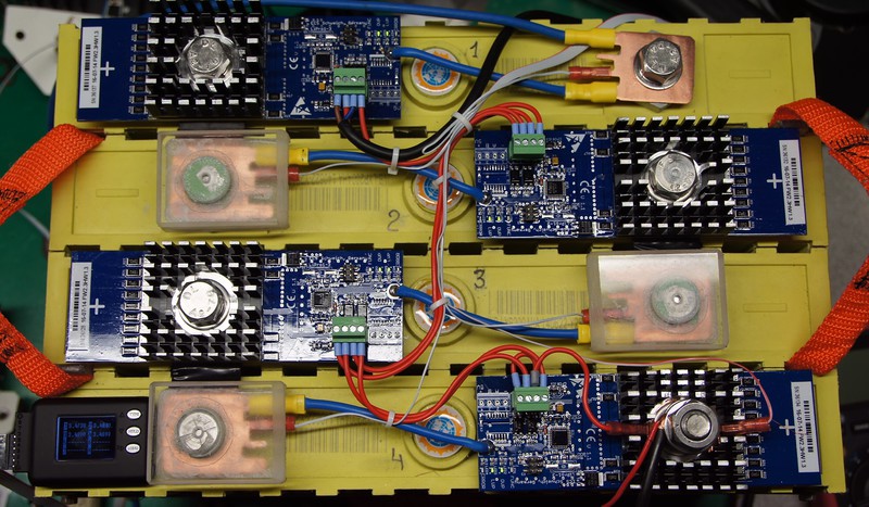 Und genau hier sehe ich das Problem meines Systems, denn die 14,4V reichen nicht aus um die Balance-Spannung von 3,65V (LiPro1-3 für LeFeYPO4) zu erreichen. Muß einen Weg finden um die Temperaturkompensation zu "mißbrauchen" um die Ladespannung etwas anzuheben. Somit kann auch der Leitungsverlust kompensiert werden. Ich versuche es Dir noch einmal zu sagen: Du hast kein Problem, wenn Deine Zellen 3.65V nicht erreichen! Du hast kein Problem, wenn Dein BLG "nur" 14.4V schafft! Es ist nicht vergleichbar mi Blei, wo es zu einer Sulfatisierung kommt, wenn die Empfohlene Schlussspannung nie erreicht wird. Die Zelle ist bei 3.50V schon fast vollständig geladen. Hier ein ganz interessanter Blogg von einem E-Auto User mit viel Erfahrung. Nicht nur der direkt verlinkte Artikel ist interessant, sondern auch etliche andere auf diesem Blogg: --> Link Du musst das nicht machen !!! 14.4 Volt reichen völlig aus. Lass alles so. Wenn der Drift zu groß wird kommt die eine Zelle über 3.65 Volt und der Balancer fängt sie ein. Es kann nichts passieren. Wenn mal eine Zelle bei Vorladung ein wenig anders ist so besteht überhaupt keine Gefahr. Gefährlich wird es nur bei Balancerplatinen ohne Abschaltung. So nun bau alles ein und nutze die Anlage. Was mir an den Kühlkörper nicht gefällt ist, das sie sehr nah an den Bauelementen sind und das die Schraube auf die Platine drückt .Die gesamte Anpresskraft liegt auf der Elektronik. Melde Dich bei mir ich schicke dir schöne Adapterschrauben mit Flügelkühlkörper in Elox Rot.