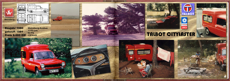 Obwohl ich inzwischen mit zunehmendem Alter doch etwas mehr Platz, Komfort und Luxus bevorzuge (siehe meine Vorstellung), habe ich jahrelang mit solchen Minimobilen Urlaub gemacht. Als Beispiel mein Talbot Citylaster mit Weinsberg-"Weekend"-Ausbau, mit dem wir sogar zu zweit mit Kind Urlaub gemacht haben (und fast immer freistehend; alle paar Tage mal eine Nacht auf dem CP zu Duschen)