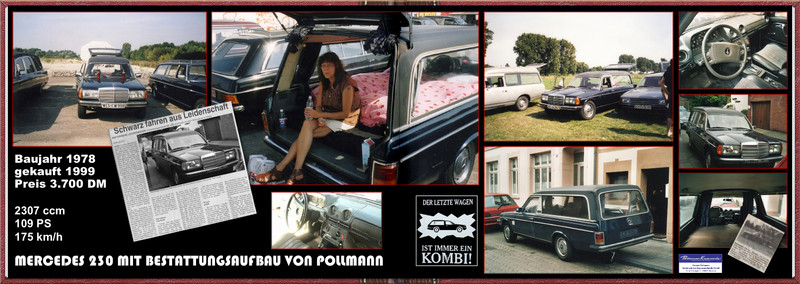 Dieses Auto habe ich meiner Frau zum 40. Geburtstag geschenkt, da sie, seit sie mit 16 Jahren den Kultfilm "Harold und Maude" gesehen hatte, immer einen Leichenwagen haben wollte. (Ich habe nie behauptet, dass wir normal sind... :razz: :razz: :razz:) Natürlich hat es schon seltsame Blicke gegeben, wenn wir mit unserem Gefährt auf einem Campingplatz vorgefahren sind, aber nachdem festgestellt wurde, dass wir weder Grufties sind noch schwarze Messen feiern, hat sich das schnell wieder gelegt... Ausserdem haben wir wunderschöne Treffen mit anderen sogenannten "Schwarzfahrern" erlebt, wo es zwar auch ein paar skurrile Typen gab, für die meisten aber die Pflege und der Erhalt von historischen Bestattungsfahrzeugen im Vordergrund stand.