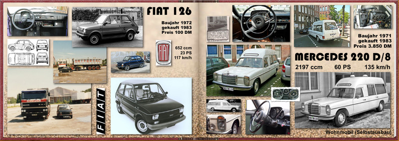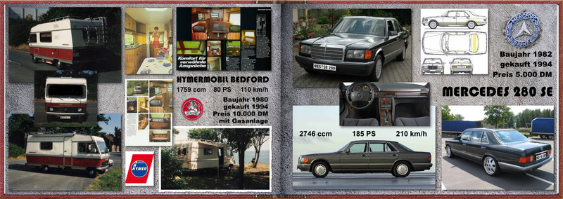 nachdem mein Vorstellungsthread eine so grosse Resonanz gefunden hat und damit etwas "aufgebläht" wurde, habe ich mich entschlossen, in einem neuen Thread noch mal von vorne anzufangen mit der Vorstellung der in meinem 47 Jahre währenden Autoleben gefahrenen Wohnmobile und Wohnwagen. Wie schon bisher werde ich Seiten aus meinem privaten Fotobuch hochladen, kann aber bei Bedarf auch Detailbilder zeigen. Damit ich eventuelle Posts bzw. Fragen beantworten kann (und um das Ganze etwas spannender zu gestalten), werde ich sagen wir mal pro Tag immer nur eine Seite hochladen...