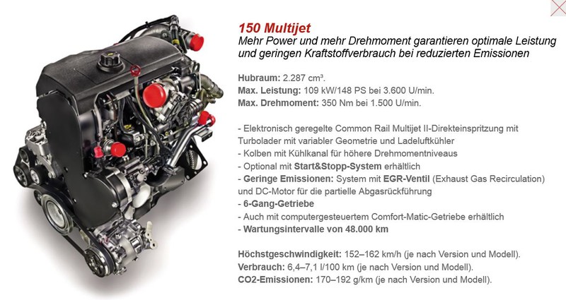 gogel mal -eine große reisemobilzeitschrift hatte mal den orginalen 148 ps motor mit einen gechipten verglichen -der hatte dann zwar 160 ps ,auch mehr drehmoment -aber erst ab 1900 u/min -vtg passt halt besser zum ganzen drehzahlband mein privat pkw hat 170 ps mit biturbo -der geht untenrum auch wesentlich besser als ein gleichstarker passat lg Michel Danke Michel für Deine Infos, so im Detail war mir das auch nicht bewusst. Hier die Beschreibungen 130 PS und 148 PS Motoren von Fiat, das Teil nennt sich VTG-Lader: --> Link ![]() ![]() Liebe Leute! Nu' lasst mal die Kirche im Dorf! Der TE wolle doch lediglich wissen, ob der 131-PS- oder 148-PS-Motor für einen Kastenwagen (!) nötig ist. Jeder halbwegs vernüftige Kastenwagen-Fahrer wird bestätigen, dass der 131-PS-Motor dicke ausreicht. Viele 120-PS-Citroen-Fahrer berichten in den entsprechenden Foren, dass sie mit dem 120-PS-Motor mehr als zufrieden sind. Selbst zahlreiche 115-PS-Fahrer mit dem 2,0-Lier-Motor (bei FIAT) sagen: Das reicht immer... Ich weiss, wovon ich rede: Selbst mit meinem 4,6-Tonner und seinen 122 PS bin ich bisher noch immer überall locker zwischen Dänemark und Sizilien sowie zwischen der Bretagne und den Masuren hingekommen... PS: Das ist der Unterschied - Ich bin Wohnmobilst und kein Sub-Unternehmer für UPS oder andere Sklaven-Treiber... PPS: Schönen an die Fans des überaus intelligenten Spruchs: "Hubraum ist nur durch noch mehr Hubraum zu ersetzen..."