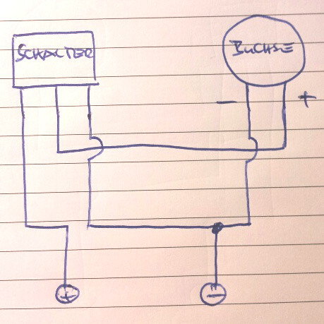 Üblicherweise ist der Mittelpin der gemeinsame. D.h. Plus Quelle geht an einen äußeren (Schaltersymbol), Plus zum Verbraucher an den mittleren, und Minus (für die LED) an den anderen äußern (meist LED oder Glühbirnensysmbol). RK Ihr kümmert Euch ja wirklich - toll! Der Schalter sieht so aus. Die Anschlüsse sind durchnummeriert und ein Anschluss (No. 1) hat eine etwas andere Farbe, das soll der für die Lampe sein: ![]() Und momentan habe ich so verdrahtet, da ich es mit einer Brücke irgendwie nicht hinbekommen habe und den Schalter eben nun als ordinären Ein-/Ausschalter nutze ohne Kontrolllampe. ![]() Und wenn ich RK richtig verstanden habe, sollte es so auch mit der Kontrollleuchte im Schalter klappen: ![]() Danke für die Hilfe! Moin, das mit den Störsignalen irretiert mich jetzt, ist das wirklich bei allen USB-Dosen so? Ich muss komplett alles neu machen, weil keinerlei 12V im Fahrerbereich verbaut ist. Danke ,hat mir heute auch geholfen :D