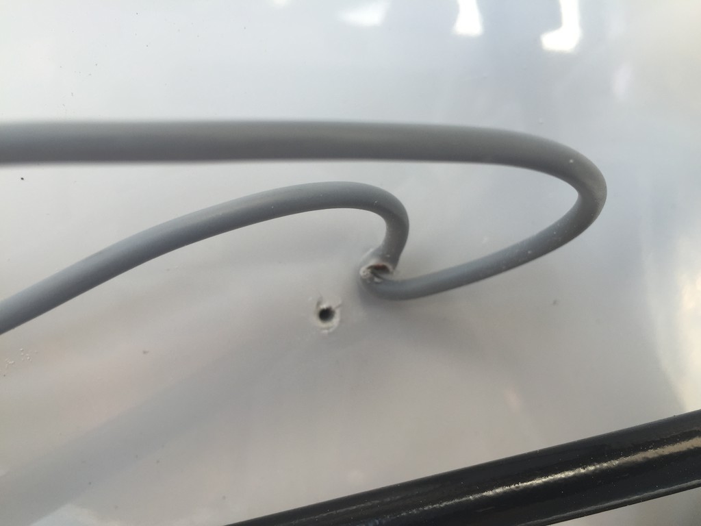 volle Absicht war es vermutlich nicht aber da war eine Schraube durchs Kabel geschraubt... Es war eine Abdeckung über das Kabel geschraubt und mit der Befestigungsschraube wurde gleichzeitig das Kabel fixiert :eek: