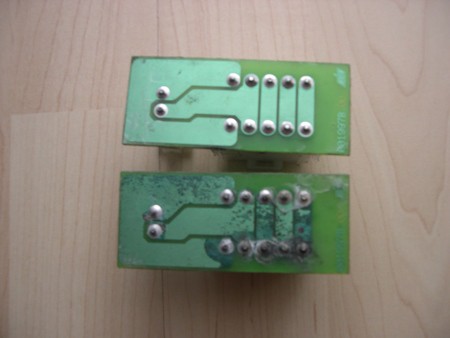 Am oberen Bild die noch gute, die untere die bereits oxidierte Platine.