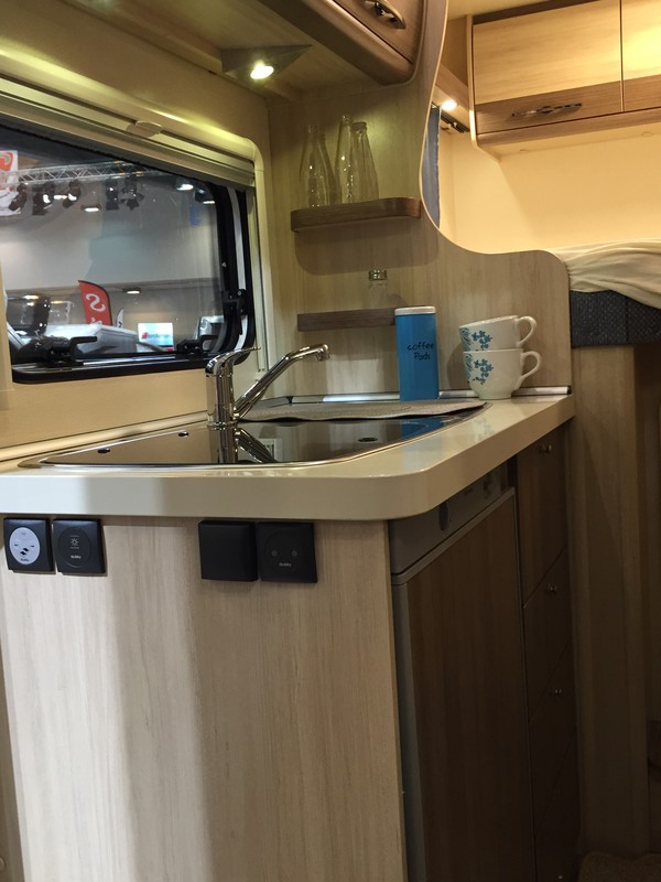 Die Sanitärinstallation genügt dank TRUMA-Heizung inkl. 10ltr. Warmwasseraufbereitung, einem Combi 4 TRUMA LCD-Bedienpanel Combi CP Plus und einer Warmwasserversorgung in Küche sowie im Bad den regulären Ansprüchen. Der frostgeschützt installierte Frischwassertank erlaubt zumindest grundsätzlich die Möglichkeit auch bei widrigen Witterungsverhältnissen zu campen.