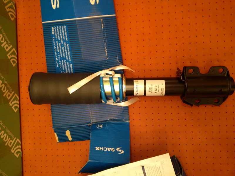Vorne: tausch der origanl Stoßdämpfer gegen verstärkte Sachs Super Touring Dämpfer in der Camping- und Krankenwagenausführung (Heavy Duty) + Zusatzfedern VB Coil Spring von VBairsuspension