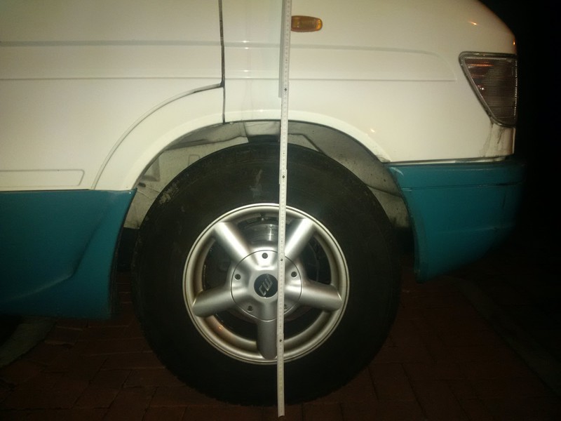 Ergebniss: vorne ist er jetzt 4,5 cm höher gekommen und die Räder stehen wieder gerade