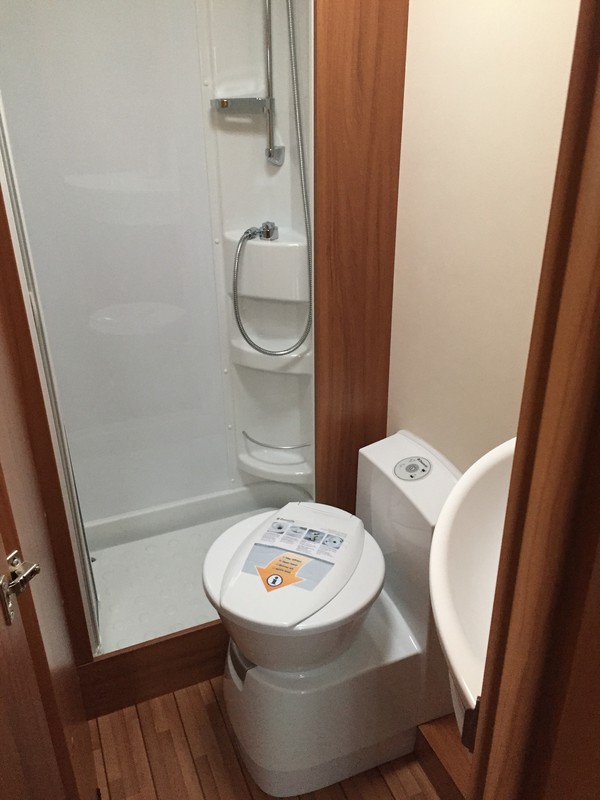 Im Heck findet man zum einen das Längsbad, ausgestattet mit einer separaten Dusche und das französische Bett.