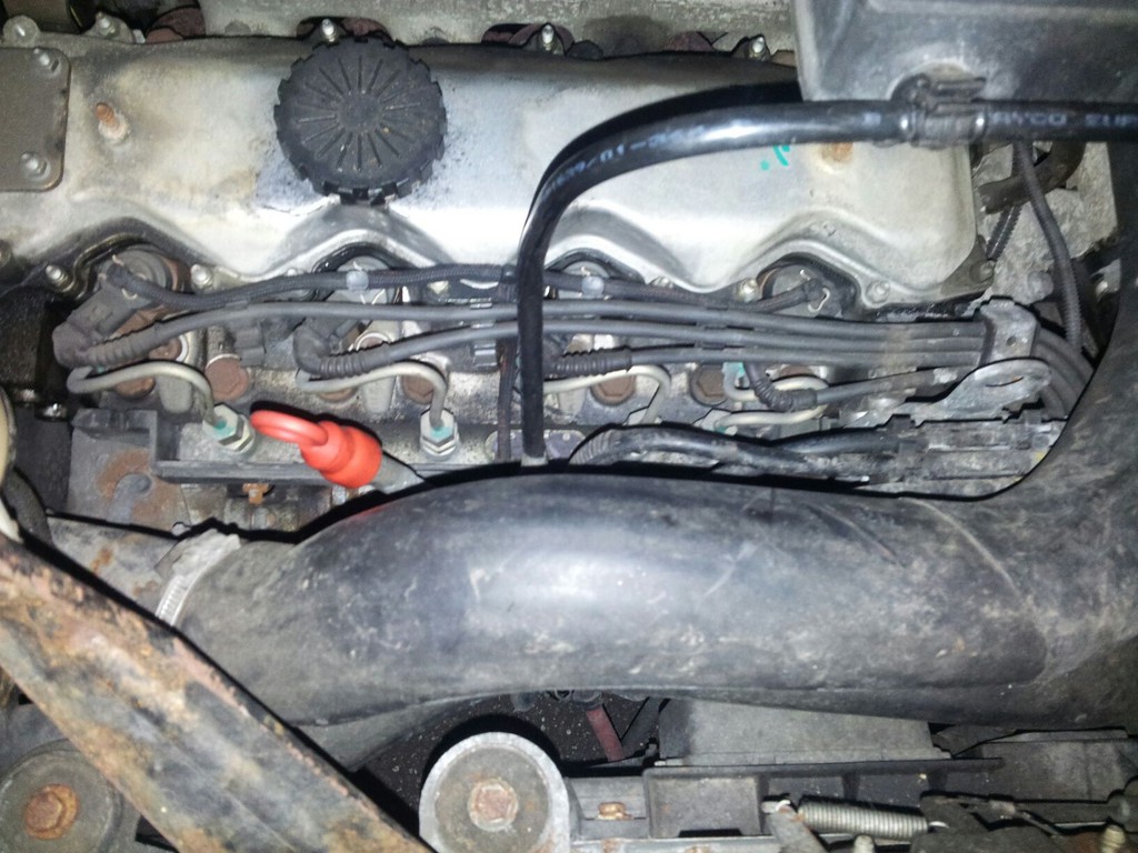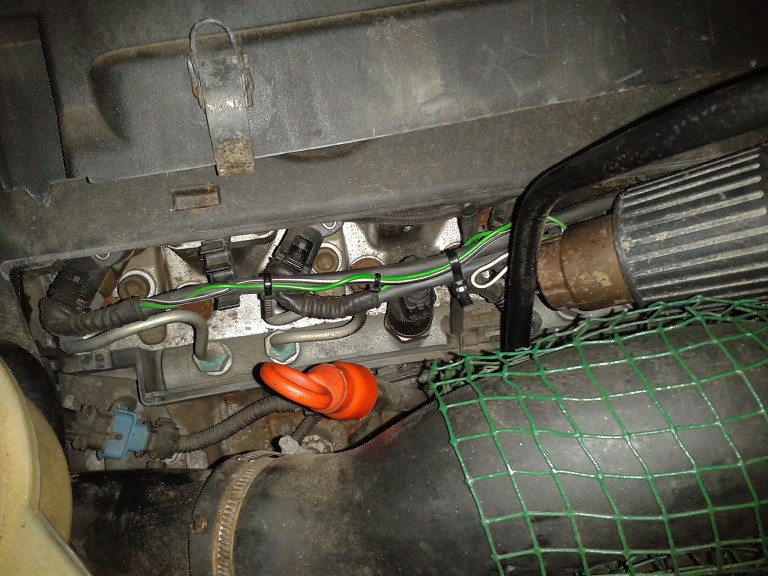 Wenn das in den Papieren steht, dann bekommst du zumindest die grüne Plakette, aber das mit dem fehlenden Sensor verstehe ich nicht, hast du noch mehr Fotos davon oder eine Nummer die auf dem Rail sichtbar ist? Schau nochmal ob der Sensor nicht unten oder seitlich am Railrohr(Verteilerrohr) verbaut ist. Wenn nicht,sitzt er auf der Hochdruckpumpe.Die findest du wen du die 5.Kraftstoff-Leitung die nicht oben zum Zylinderkopf geht,zurück verfolgst. franz Ps:Über die Teile Nr.von Bosch,die man auf deinem Bild vom Railrohr sieht,aber nicht genau erkennen kann, solltest du auch noch genauere Inf.bekommen :ja: oder über die Motor Nr. beim Fiat-Händler Tja ,also das mit der grünen Plakette ist ja durch,die hab ich ja problemlos bekommen. Der Tüv hat auch den fachgerechten Einbau kontroliert. Ich hab hier nochmal eine Gesamtansicht vom Motor. Finden kann ich nix,was nach Railsensor aussieht... ![]()