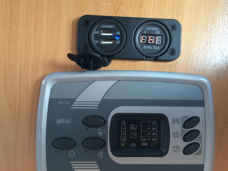 HAllo, genau so ist es. Und wesentlich genauer als das Bordpanel ist es auch (zumindest bei mir). Hab`s nachgemessen! :) Nachdem der Stecker nun erschöpfend beleuchtet wurde: Was auch gut für die Startbatterie geeignet ist, ist ein OBD2-Blutooth Stecker. Dann kannst Du mit dem Smartphone und einer App alle Fahrgestellparameter abrufen (Temperatur Kühlwasser / Ansaugluft, Ladedruck, LiMa Spannung, Geschwindigkeit, Drehzahl etc.) [url]http://www.amazon.de/COM-FOUR®-Super-Mini-ELM327-Bluetooth-Scanner-Multi-Marken-CAN-BUS/dp/B00HYXHLCQ/ref=pd_sim_auto_8[/url] [url]http://www.amazon.de/Andoer-Bluetooth-Testgerät-Interface-Diagnosegerät-Blue/dp/B00DI6F3VO/ref=pd_sim_auto_10[/url] Amazon Link Für das Eierfone / Eiertablett gibt es auch OBD2-WLAN- Interfaces: [url]http://www.amazon.de/DBPOWER®-ELM327-Automotive-Diagnostics-Scanner/dp/B00DE8AB3G/ref=sr_1_2[/url] Ich mein ja blos. Damit kann man auch gleich ein paar der gängigen Fehlercodes auslesen. Für eine fahrzeugspezifische Tiefen-Diagnose braucht man allerdings bessere Software. (z.B. Defekte Glühlampen, Sensoren, MKL Fehlercodes der Drosselklappe...) (Als App z.B. TORQUE OBD2 Check) Hallo Zusammen, ich habe mir das hier eingebaut: --> Link Das ersetzt natürlich keinen BC, aber ich habe immer die Aufbaubatterie im Blick (Zumindest was die Spannung angeht). Und das Gerät zeigt ziemlich genau die Spannug an (habe ich mit einem Multimeter nachgemessen +-0.1 Volt). Somit habe ich die Aufbaubatterie im Blick und kann sehen wann die Spannung zu weit runter geht wenn ich frei stehe. hier gerne ein Bild vom Einbau: Und für den Preis noch gleichzeitig eine Ladestation der Handys dabei. Also für mich reicht das erstmal. VG Jörg Hallo Jörg, bei Deiner Quelle (Link) ausverkauft, aber ich glaube dass dies hier aus der Bucht das Gleiche ist. Link zum eBay Artikel