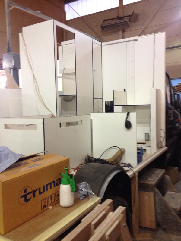 vor 10 Monaten haben wir unser unser neues Wohnmobil bestellt, nun hat vor 8 Wochen endlich die Bauphase begonnnen. Als Ausbauer haben wir Woelcke gewählt - der Autark Runner gefiel uns einfach am besten, außerdem können wir hier alle Wünsche umsetzen und das sind nicht wenige: Allrad, Motorradbühne, kein Gas an Bord, Heckgarage, Sitzgruppe im Heck mit Umbau, aufklappbares Heckteil, Solar etc. und Zulassung mit 3,5 to. In ca. 5 Wochen soll "er" nun fertig sein. Hier das erste Bild vom (noch nicht fertigen) Innenausbau - alles in weiss mit blauem Umleimer. Wir planen schon die Jungfernfahrt über Ostern, hoffentlich klappts.