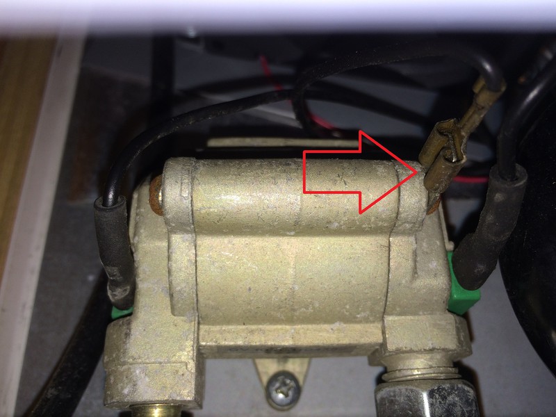 Am Magnetventil sind drei Anschlüsse - der markierte müsste Masse sein
