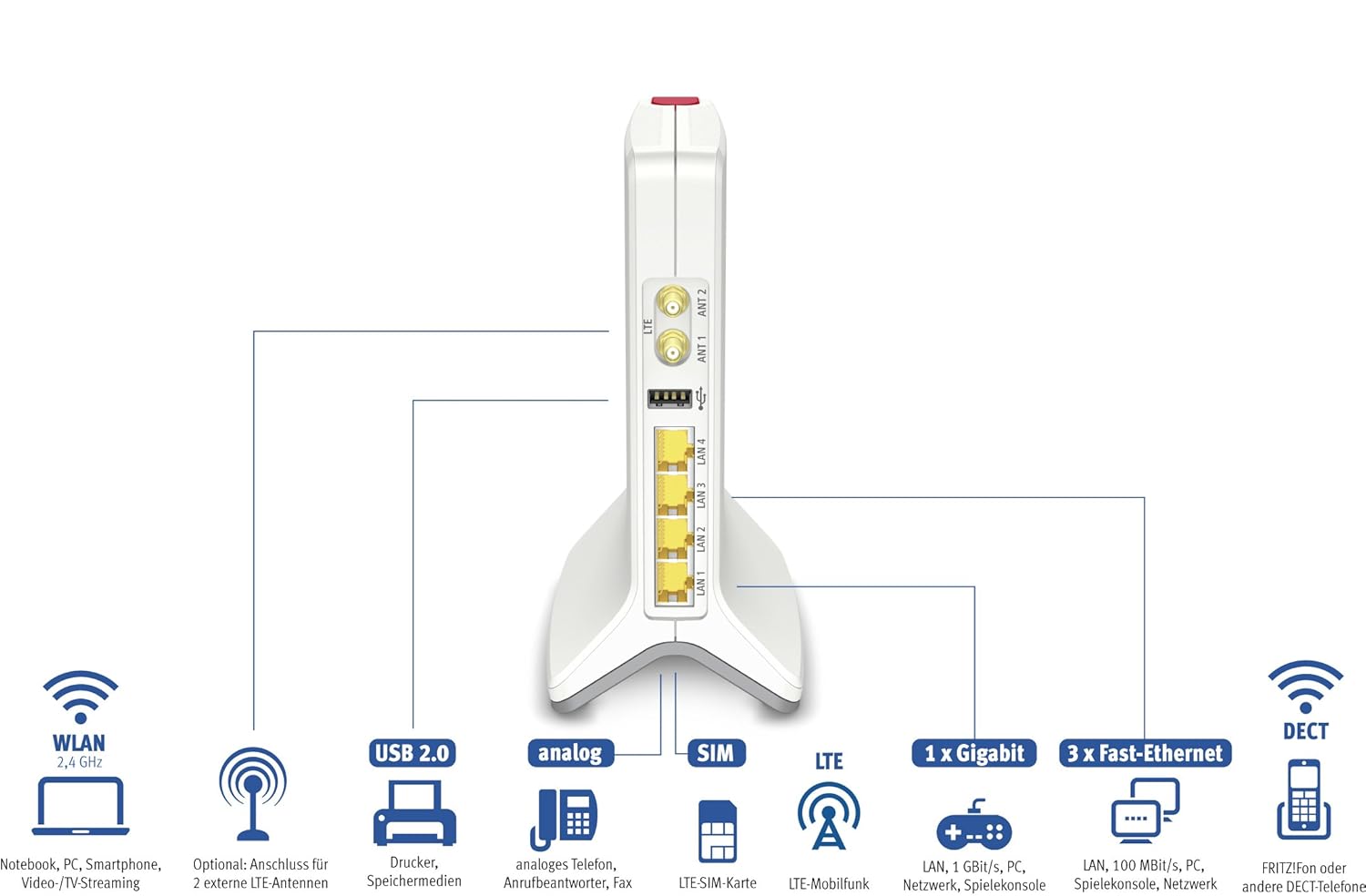 Fast jeder beliebige Fritzbox wird funktionieren. Ich benütze einen 7390 mit einen LTE Dongle von Huawei. Kann ich nur empfehlen. Das Problem mit den LTE Antennen ist das sie meistens Richtungsbestimmt sind. Passen also nur richtig an einen Hauswand o.ä. Die Omnidirektionalen Antennen sind recht teuer und haben einen relativ niedrigen Gain. Siehe --> Link