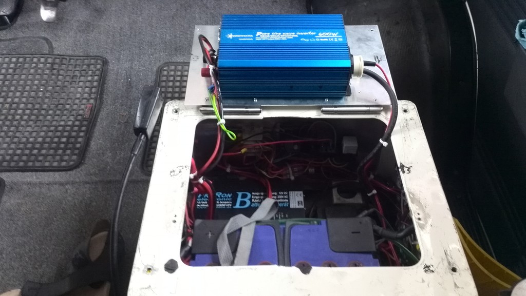 da hast du dir aber viel Mühe gegeben alles unter den Beifahrer-Sitz zu bekommen :D (da braucht man schon fast Chirurgen-Hände). Obwohl wir ja fast das gleiche Wohnmobil haben, sieht meine Einbausituation ein wenig anders aus. Bei meiner Installation war mir vor allem eins wichtig, Batterien raus aus dem Fahrerhaus.