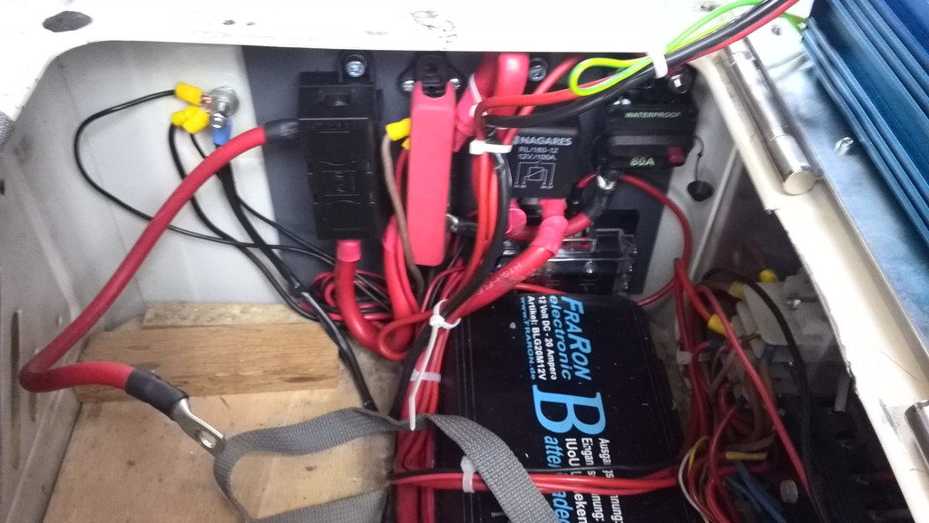 Verkablung von Lima bis zur Aufbaubatterie mit 35mm² Kabel und neuem Trennrelais aufgebaut.