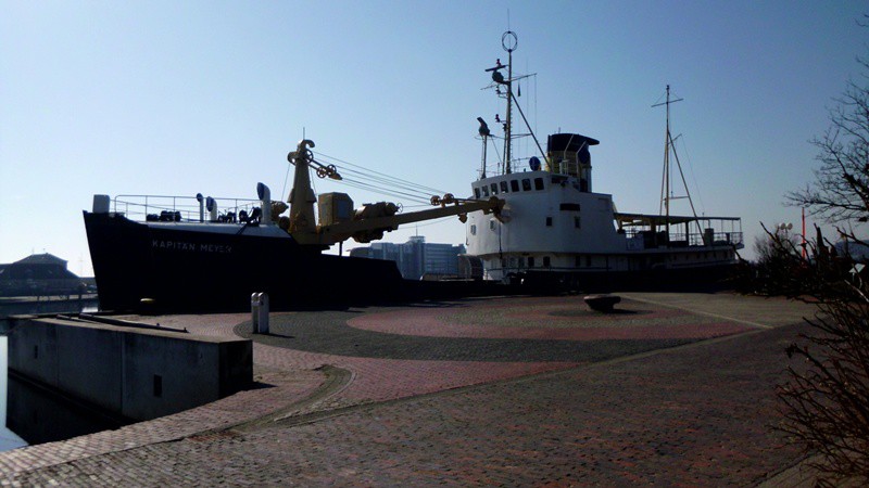 In einem anderen Dock lag gerade das Forschungsschiff "Polarstern", das bei Einsätzen in der Antarktis einen Schaden erlitten hat. Es war wenige Tage vor meinem Besuch in Bremerhaven eingetroffen und soll wohl im Mai wieder auslaufen.