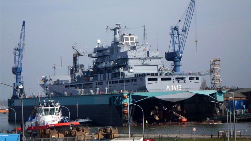 Gerade war ein Schiff der Bundeswehr mit der Nummer A 1413 ins Hafengebiet durch die Kaiserschleuse eingelaufen... Ein Blick ins Internet klärte mich gerade auf, daß es sich um den Einsatzgruppenversorger "Bonn" handelt. --> Link)