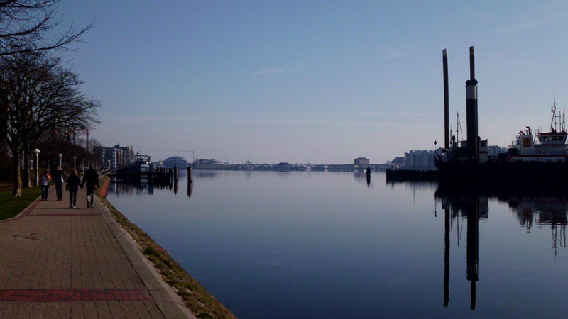 rüber auf die andere Seite des Hafenbeckens geht. Hier haben die Straßen des Viertels alle Flussnamen und ich ging durch die Rheinstraße Richtung Zentrum. Die Querstraßen waren die Ahr-, Mosel-, Main oder Lahnstraße.