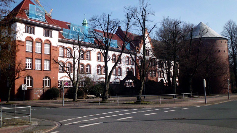 Das ist ein Hochbunker. Von denen gibt es im Stadtgebiet auch 70 Jahre nach dem Krieg immer noch ein paar. Wenn die Nazis von irgendwas Ahnung hatten, dann von Beton. Der an der Rheinstraße ist nur mit einer Klinkerverblendung aufgehübscht.