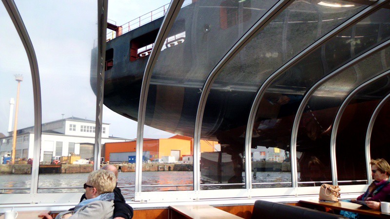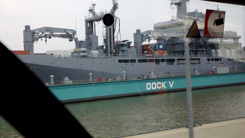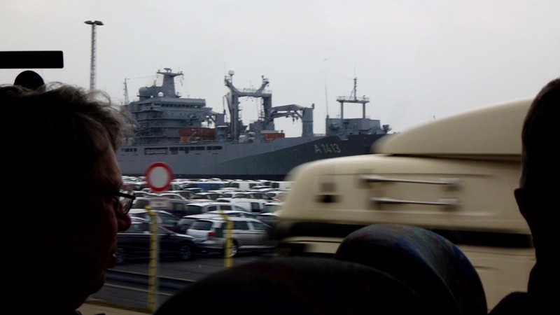 So langsam war dann das Ende der Bustour durch den Hafenbereich gekommen, ich kann es nur wirklich jedem empfehlen; man bekommt hier viel zu sehen. Auf dem Rückweg kamen wir noch einmal an dem Marineschiff vorbei, das bereits ins Dock gefahren war.