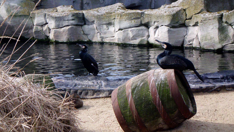 Diese beiden Kormorane schauen den sportlichen Vögeln gern mit Begeisterung zu...
