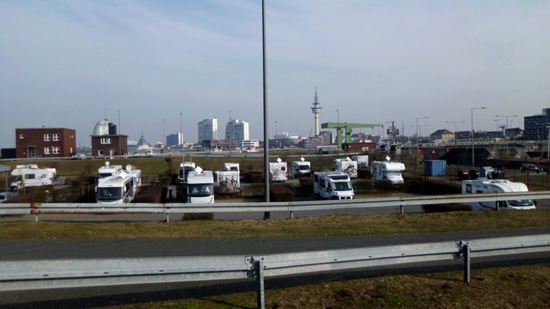Endlich! Die lange Zeit des Wartens ist nun endlich vorbei. Die erste Ausfahrt dieses Jahres mit dem Wohnmobil steht nun unmittelbar bevor. Als Ziel hatte ich ja eigentlich das Emsland mit der Meyer-Werft in Papenburg gedacht, da dort ja wieder ein Schiffspassage des Kreuzfahrtschiffes "Anthem of the seas" über die Ems anstand. Nun konnte das Schiff aber nicht die Zeit abwarten, bis ich Zeit für den Urlaub hatte und war schon eine Woche vor meiner Abfahrt auf "Hoher See". So galt es für mich, die Tour anders zu planen und ein anderes Reiseziel zu suchen. Papenburg kannte ich schon und ohne die Schiffspassage wäre es uninteressant. Nun war es so geplant, das das Schiff in Bremerhaven endausgerüstet werden soll. Vielleicht ergibt sich ja da eine Möglichkeit, den Dampfer zu sehen. Also machte ich mich auf nach Bremerhaven. Und am Sonntag, 15. März, war es dann soweit. Das lange Warten hatte ein Ende. Fast auf den Tag genau fünf Monate stand das Wohnmobil in der Scheune beim Bauern, nur zwei kurze Bewegungsfahrten hatte ich über den Winter gemacht. Jetzt konnte es endlich mal wieder an die "frische Luft". Am Vortag bereits hatte ich die notwendigen Sachen ins Mobil verfrachtet und konnte jetzt frühmorgens aufbrechen. Bereits um 08:15 Uhr saß ich hinterm Lenkrad. Wie bekomme ich das Teil doch gleich zum Laufen? Ach ja, die Kupplung treten, den Zündschlüssel im Zündschloß umdrehen.... Brrruuummm... Da war es, das ersehnte Geräusch! Kurz zum Abschied von den Eltern die Hupe betätigt... tuuuut... ersten Gang eingelegt... Gaspedal mit dem rechten Fuß treten... das Fahrzeug bewegte sich... lenken... oh, war das gut... Kupplung... zweiter Gang, dritter und vierter, es lief gut, fünfter Gang... ich war endlich wieder "on the road".