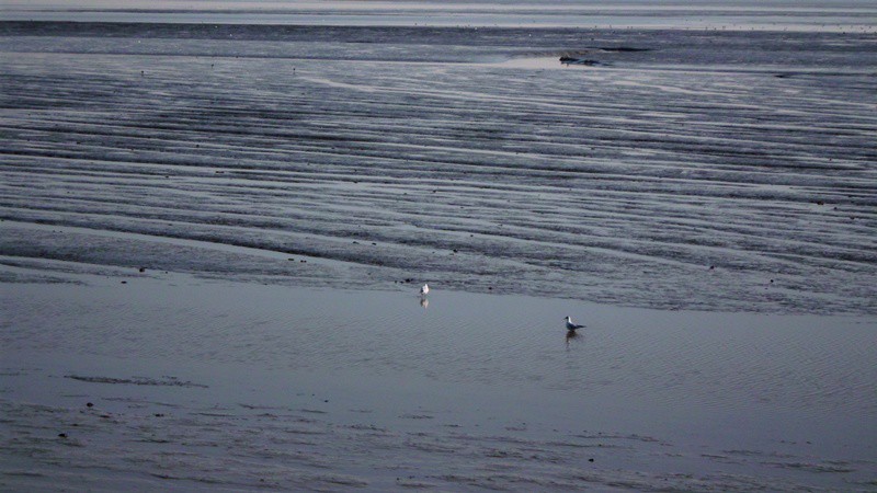 und wie man gut sehen kann, ist der Jadebusen gerade ausgelaufen. Jemand hat den Stöpsel rausgezogen. Es ist Ebbe.