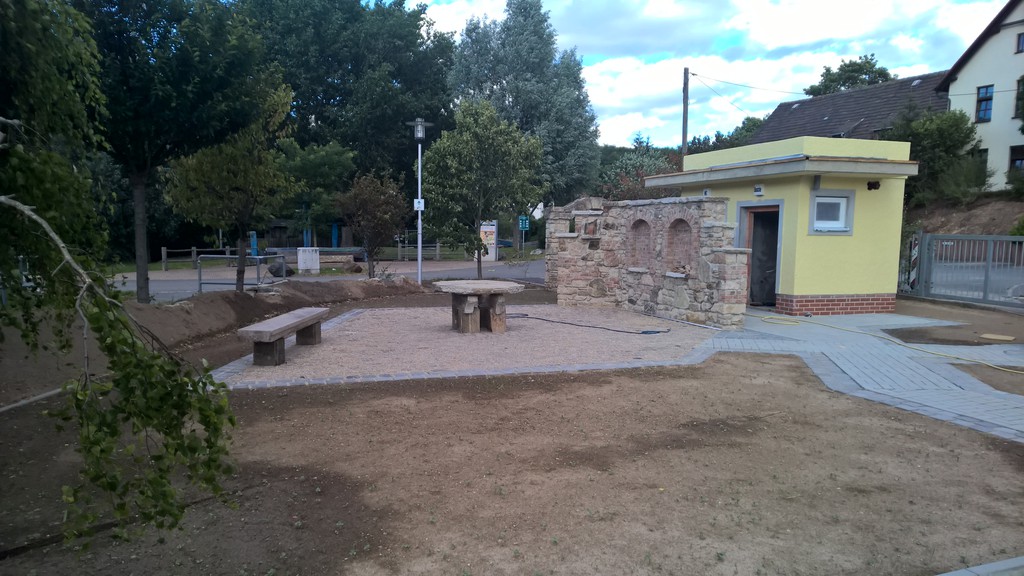 Stellplatz (am Fernradwanderweg Thüringer Städtekette). Derzeit auch im Bau befindlich: ein Gebäude mit einem barrierefreien WC-/Waschzimmer und einer Umkleide mit Dusche, Gebäude