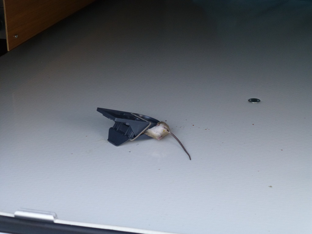 :-) :-) ..... warst Du schon jemals UNTER Deinem WoMo gelegen???? :?: Ableitungen für Boilerfrostventil, Tanküberlauf, Kabeldurchführungen, Ansaugungen für Heizung, Zwangsbelüftung, ...... Nagergerechte Wege ins Mobil gibts hier normalerweise ausreichend! :!: Das ist bei mir alles zu oder nur der kleine Schlauch der durch den Boden geht. Grosse Luftlöcher haben alle Gitter dafor. Du kommem nicht rein. Dann ist ja noch der Hundegeruch. Ein Loch in Daumendicke reicht jeder Maus! Genau, unser Mäuschen kam in der Toscana über Motor, Spältchen bei der Beifahrertür zwischen Motor und Fahrerhaus rein, hat dann einen Durchschlupf vom Fahrerhaus über die Kabel von der Batterie in den Doppelboden gefunden, Bleistiftdick reicht anscheinend. Allerdings haben wir nach der dritten Nacht Glück und sie Pech gehabt: ![]() Mäuse kommen überall hin. Ihr habr noch Glück gehabt, dass krine Maus in den Heizungssträngen verreckt ist.. :roll: