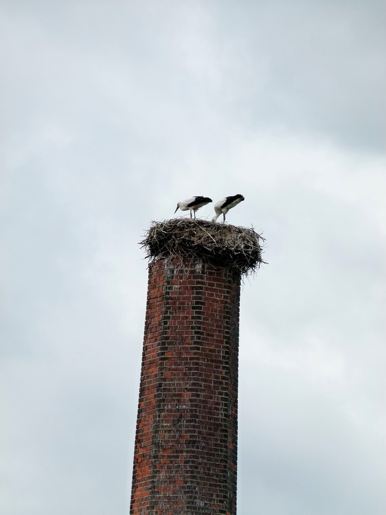 Auf einem Schonstein nistet sich jährlich ein Storchenpaar ein.