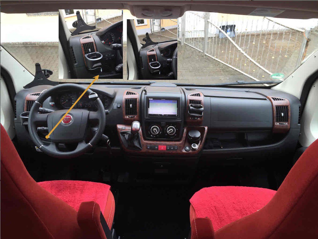 Ich würde gerne links vom Lenkrad (egal ob oben oder von Vorne) eine Strommöglichkeit haben (für Tab) und bin mirnciht sicher wo ich die Dose setzen könnte ?