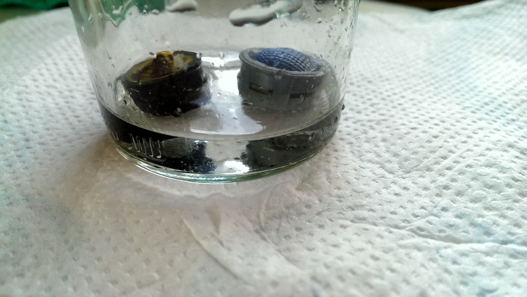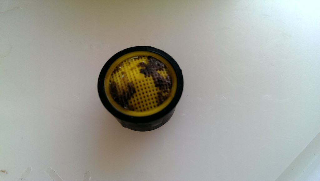 Seit der Wassertankreinigung kommt an der Mischbatterie an der Spüle nur noch ein Rinnsal Wasser an. Egal ob kalt oder warm, der Durchfluß ist sehr gering. In der Naßzelle ist alles wie früher, hier kommt ein satter Strahl aus der Armatur. Zuerst hatte ich einen verstopften Filter in Verdacht. Also die Druckwasserpumpe aufgemacht und den Filter gereinigt, saß ein Bisschen mit Schmodder zu. Die Wasserleitungen verlaufen vom Tank zur Spüle und zweigen auf halbem Weg zur Naßzelle ab.