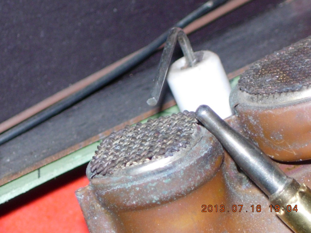 Habe mal 2 Bilder zur Verdeutlichung beigefügt. Hier ist der Thermofühler für die Flammenüberwachung am kleinen Schalenbrenner für die Zündflamme zu sehen. Ebenso die Zündkerze mit der Keramikummantelung Bild des Überhitzungsschalters / Thermoschalter an der seitlichen Heizungsverkleidung