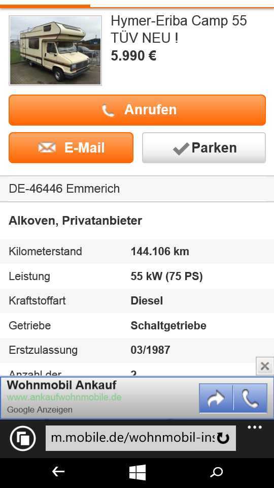 Tja , nach Dem , brauchst Du nicht mehr schauen , der ist weg .... PS: Hier lesen sicherlich Interessenten und Händler mit.... Da haste recht der hatte sogar noch einen fur 8800 krass geht das schnell hatte nicht sein sollen Nur nicht alles über's Knie biegen -> wer Zeit hat bekommt auch für 10tsd. ein tolles Mobil, das auch iO. ist.... Ich weiss , warten ist echt schwer aber wer gut abwägt, kann etliche Euros sparen und muß nicht die "Überteuerten Torfbuden" , Bj 90 und älter,vom Händler kaufen ....(meine Erfahrung -> schreib ich lieber gleich hier her , denn es gibt auch viele "seriöse Händler "). Es ist mir ein Rätsel warum Mover meinen Einwand als Schlaumeier herunterstuft. Hier braucht ein Womofan Hilfe und ich habe ihm geraten, ab den 90er Mobilen sensibel vorzugehen was den Unterboden betrifft. Ich hatte auch einen 92er Duc und kann somit etwas dazu beitragen, muss aber nicht. Roland |