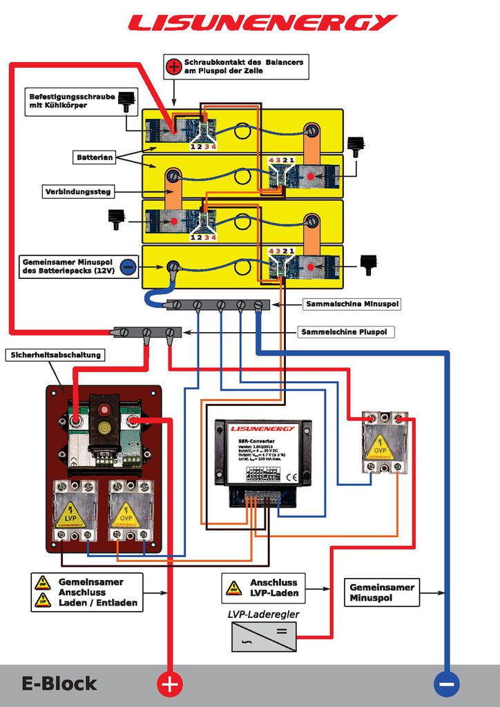 Diese Thema soll dazu beitragen , diese Technik besser zu verstehen. Alles was Ihr dazu findet kann hier veröffentlicht werden. Sehr wichtig sind Aussagen die in englischer Sprache verfasst wurden. Wer also was dazu findet und es übersetzt dem Danke ich sehr ! Je mehr sich daran beteiligen desto interessanter kann es werden . Durch die Rubriken ist es jetzt möglich sehr konkret zu suchen. Also ran an die Arbeit !!! Es lohnt sich ! Ich fang mal an: es gibt unterschiedliche Lithiumakkus, die durch verschiedene Zusammensetzungen Eigenschaften besitzen, die mit Blei oder einer anderen Sorte nicht zu erreichen sind. In der Vergangenheit gab es LiIon Akkus, die aus Elementen bestanden, wie wir sie aus dem Handy oder Modellbau kennen. Das gefährliche bei diesen Akkus ist,werden sie überladen oder zu stark entladen, können diese Akkus anfangen zu brennen. Im Wohnmobil hat sich dieser Akkutyp daher nicht durchgesetzt. Eine neue Lithiumchemie ist die hier bekannte Lithiumeisenposphatbatterie. Der Anteil an Lithium konnte stark gesenkt werden. Das andere Material Eisenphosphat reagiert im Ernstfall nicht so stark und es wird kein Sauerstoff freigesetzt. Nachteil dieser Technologie ist, das diese Akkus schwerer sind wie LiIon . Natürlich stört das uns nicht, weil es immer noch viel leichter ist wie Blei . Bei einem Bleiakku sind 6 Zellen notwendig, um auf eine Spannung von 12 Volt zu kommen. Bei Lifepo4 ist die Spannung pro Zelle etwas höher, so das wir nur 4 Zellen benötigen. Bei kleinen Akkus, wie im Wohnmobil sind diese Zellen schon in einem Gehäuse verbaut. Bei Lithium ist es ähnlich. Als Zellen werden kleine Rundzellen z.B. 18650 verwendet. Diese Zellen werden in hoher Stückzahl produziert. Wenn Zellen größer werden, gibt es auch einzelne Zellen im Industriebereich um schnell größere Systeme zusammenzubauen. Diese Zellen sind für den Selbstbauer sehr interessant ,da mit 4 Zellen schnell ein fertiger Pack entstehen kann. Auch sind Einzelzellen im Industriebereich auf stärke Beanspruchung ausgelegt. Der Nachteil dieses Akkus ist,das dieser nicht durch Gasung einzelner Zellen ausgeglichen werden kann. Dafür wird eine Elektronik benötigt,die über ein Heizwiederstand den Strom verbrät oder durch Spulentrafos die Energie von einer zur anderen Zelle umgeleitet wird.Diese Elektronik wird kuz BMS genannt. (Batteriemanagement) Fortsetzung folgt. Hallo Sonnentau, Ein guter Anfang so kommt vielleicht auch für mich Licht ins Dunkel. Das BMS System hat die Aufgabe jede einzelne Zelle genau zu überwachen. Die Aufgaben die es erfüllt sind : Ausgleich jeder Zelle (aktives Balancing oder pasives Balancing) auf einen festgelegten Spannungswert z.B. 3,4-3,65 Volt. OVP und 2,7-3,0 Volt LVP (Über und Unterspannungsschutz) Überwachung der Zelltemperatur, Schalthysterese ( vorgegebene Zeit des Zurückschaltens) , Erkennung defekte Zelle, Da wir verschiedene Ladequellen haben und die Ladequellen (solar, Netz, Notstromer,Brennstoffzelle, Wind, Lima,u.s.w.) nur eine gesammte Spannung messen können ist die Elektronik notwendig. Bei der Entladung ist das selbe : Lifepo4 Akkus haben die Eigenschaft bei unterschiedlich starker Entladung am Tiefentladepunkt plötzlich zu driften. Je älter die Zelle wird desto stärker wird dieser Effekt auftreten. Daher hat auch hier das BMS die Aufgabe eine zu schnelle Zelle einzufangen. Bei ganz neuen Systemen wird ein neuer Lösungsansatz verwendet,der aber nach meinem heutigen Kenntnisstand für Womos noch nicht so interessant ist. Durch einen aktiven Ladungsausgleich wird die schlechteste Zelle von den guten gestützt und bekommt so viel Energie ab,das die gesunden Zellen tiefer entladen werden können. Um ein System sehr genau zu steuern ist es notwendig Ladequellen und Stromverbraucher zu selektieren. Das hat den Vorteil,das Ladequellen mit automatischer Systemeinstellung (12 volt oder 24 Volt ) bei Unterbruch OVP oder LVP den Referenzwert nicht verlieren. Leider ist diese Variante sehr aufwendig,so das Systeme mit Mischvarianten den Vorteil haben ( z.B. ) Hier ist ein Selbseinbau viel leichter da kritsche Ladequellen wie Solarladeregler auf MPP Basis weiterhin ihre Systemeinstellung nicht verlieren. Sollte der Tiefentladeschutz anspringen schaltet sich das System weiterhin vollautomatisch zurück. Eine dritte Variante ist das OVP und LVP überwacht werden und bei Auslösung per Hand das System reaktiviert werden muß. Hier verlieren aber die Ladequellen ihre Referenzeinstellung) Diese Syteme werden auch Eindraht Systeme genannt. Ganz wichtig ist hier,das die Schalthysteresen im Balancer selbst oder in der Abschaltelektronik verbaut wurden. Wird ein Balancer ohne diese Funktion verwendet fängt die Abschaltung an zu flattern ( sehr schnelles Ein und Aus schalten). Dies halten mechanische Relais nicht aus.! Zu den Unterschieden von Blei und Lithium: Blei ist ein Akku der sehr billig hergestellt wird und wo immer mehr asiatische Billigprodukte auf den Markt kommen. Dieser Akku ist sehr schwer und benötigt eine sehr genaue Ladekennline . Wird dieser Akku entladen muß er wieder vollständig aufgeladen werden , was sehr viel Zeit in Anspruch nimmt. Durch immer größere Verbraucher werden diese Akkus enorm strapaziert. Ein ganz großer Nachteil ist der sogenannte Peukertwert. Dieser ist notwendigt um zu sehen, was ein Akku an Ah zur Verfügung stellt in Verbindung der Entladestromstärke. Dies bedeudet ,das nach 4 Kaffe schon Schluß sein kann, wärend eine kleine Lampe mit 10 Watt viele Stunden leuchtet. Lithiumakkus sind noch sehr teuer haben aber im mobilen Bereich einen enormen Vorteil : sie sind sehr leicht,benötigen weniger Platz, haben keinen Peukertwert, können im Schwebezustand bleiben (halbe Entladung über Wochen und Monate) vertragen ohne Probleme Wechselrichterströme, benötigen kein kompliziertes Ladeverfahren, extrem hohe Zyklenzahl, wartungsfrei, spritsparend,da sehr schnell voll, so das Lima nicht so belastet wird. Hohe Ladeströme werden 