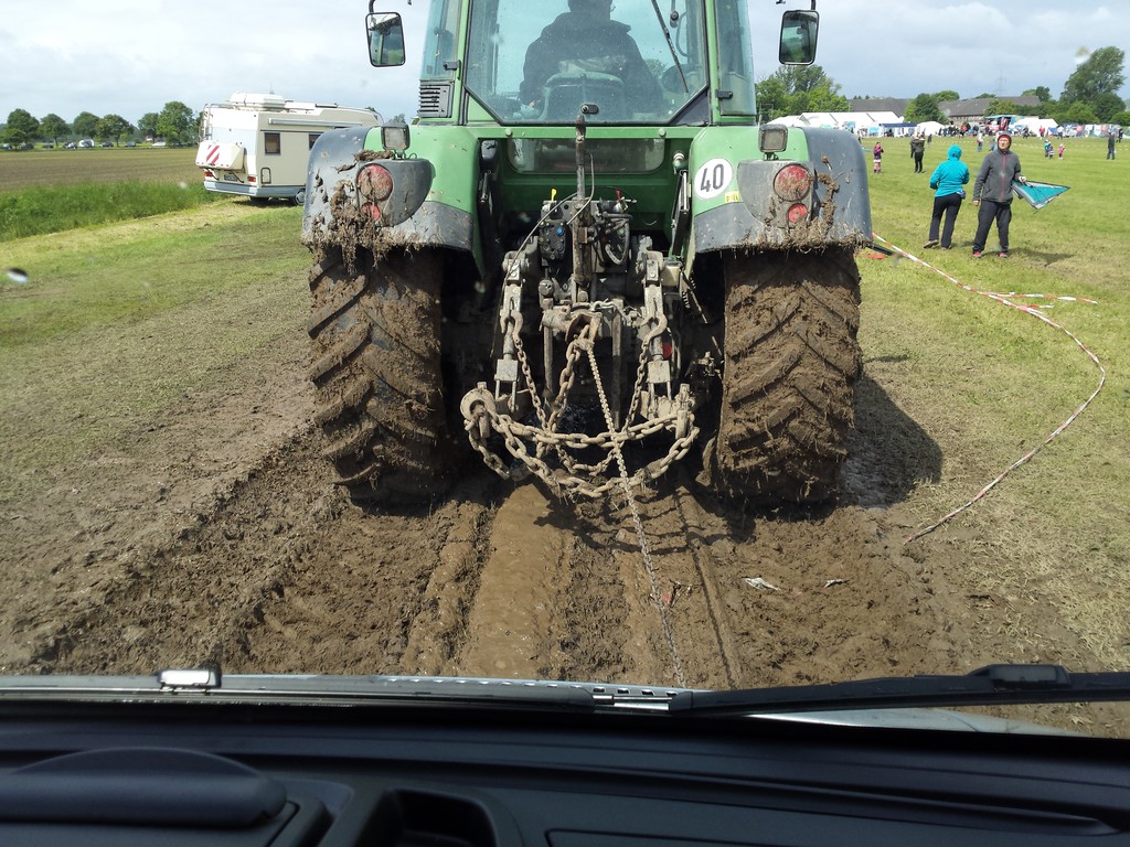 an so einem Strand war ich mal mit einem Opel Senator 3.0E 180 PS und wenig Gewicht auf der Hinterachse. Könnte man Auch als Sturm-und-Drang bezeichnen! :lol: Ging aber einfacher rauszuschieben. Liebe , Alf Uns hat es auch zu Ostern erwischt. Tagelang Regen..... Als wir den Platz anfuhren, war der Betreiber gerade nicht da, also den Platz abgeschritten und als tauglich befunden. Dann wollte meine Frau unbedingt "da hin".... und das war es. Auch wir standen schief, auch wir wollten ausrichten, auch wir kamen nicht mehr weg. Zum Glück hatte der Betreibe gute Connections zum Dorfbauern und der zog uns dann mit einem Radlager am nächsten morgen gegen einen Obolus von 10 EUR aus der Wiese.... :schlaumeier: Falsche Basis, schlechter Fahrer!! :ja: Das waren die Statements einiger sehr geschätzter Forenkameraden in einer von mir geschilderten ähnlichen Situation im vergangenen Jahr ;D Hallo, Jetzt muss ich mal blöd dazwischen fragen: Vorwärts raus ziehen ist ja gut machbar, mit dem Abschlepphaken vorne. Aber was ist, wenn man rückwärts raus gezogen werden muss? Ich habe an meinem Fahrzeug keine Anhängerkupplung, also wo und wie kann man da anpacken??? Frank