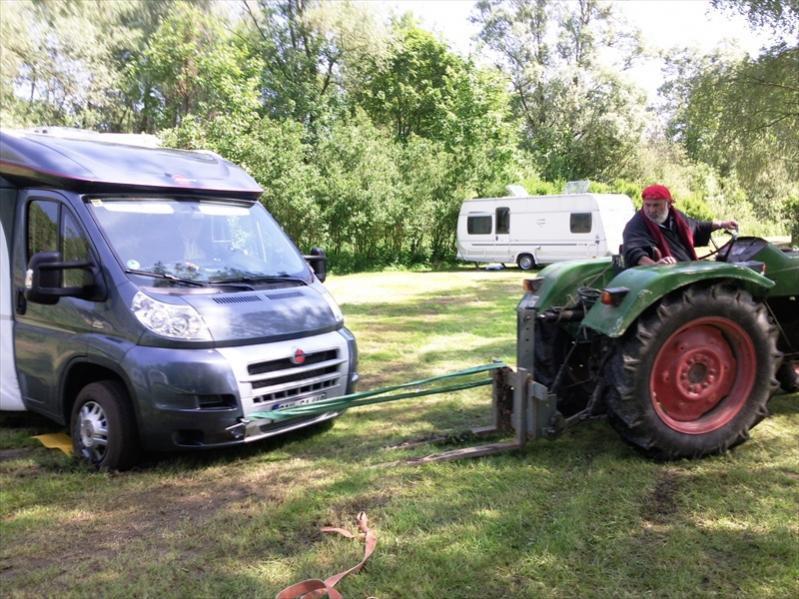 Mit Zwillingsreifen, Heckantrieb UND dann noch Differentialsperre, sollte man den meisten Widrigkeiten ziemlich gelassen entgegen sehen können. Vernünftige Ganzjahresbereifung mit MS Kennzeichnung, oder Schneeflocke, also schon was groberes Profil vorrausgesetzt. Klar, es werden keine Offroader, aber man hat halt von 6 Rädern, 4 mit Sperre angetrieben. Da geht schon was. Das blöde an unserem Dukato ist ja, das die Handbremse auf die Hinterachse wirkt, der Antrieb aber vorne ist. So kann man die Differentialwirkung auch nicht mit Handbremse mindern. Wer jedoch ein FZG hat, wo die Handbremse auf die Antriebsachse wirkt, kann sich mit der Handbremse eine manuelle, teilweise wirkende Differentialsperre schaffen. Der Trick hat schon so manchem geholfen. Man sollte es aber mal geübt haben. So einfach auf Anhieb klappt das nur selten. Ist schon bischen Spagat, gefühlvoll einkuppeln ohne die Kupplung zu morden und gleichzeitig die Handbremse anziehen und dann dabei den Motor nicht abwürgen, wenns dabei noch eng zugeht... ... :eek: ich hab auch immer spanngurte dabei -da geht mit einen festpunkt auch einiges und mit streifen von rasenteppich,dachlatten und spax kann man prima eine funktionierende anfahrhilfe basteln lg Michel Hallo, Ja, danke Bigpit das sollte mich für "normales " fahren auf unbefestigten Strecken beruhigen. Mit Schrecken denke ich an den Tag der Abgabe des alten Duc zurück. Wie man das so macht den Wagen vorher schon gewaschen und geputz dann kam der Abgabetermin, morgens früh los und dann bewegte sich die Karre keine cm mehr. Ich mußte rückwärts aus seinem Einstellplatz raus, normalerweise kein Problem , aber irgendwie ging gar nichts mehr. Ich hatte die Handbremse angezogen.. nach dem Waschen.. Da saß er schon fast bis zu den Achsen im Schotter. Hinten fest und vorne eingebuttelt. Na toll. Frau in Panik und kein Trecker in Sicht auf die Schnelle. Den Golf aus Garagge geholt und hinten angespannt ( zum Glück habe ich bei beiden Hängerkupplung) und dann mit vereinten Kräften schafften wir in raus. Hose, Jacke durfte ich danach natürlich auch wechseln und die Hände waschen. Unterwegs verloren wir auch noch ein paar Schottersteine, einer hatte sich auch noch in die Bremse verirrt, zwischen Scheibe und Bremssattel. Das ergab dann ein so hässliches Geräusch beim Bremsen, denn mußte ich auch erst noch entfernen. Aber Ende gut, alles Ok. Deshalb nie die Handbremse anziehen wenn er anschließend länger steht. Michael Hi, hab mich letztes Jahr 2 mal festgefahren. Beim erstmal hab ich direkt den 4x4 gerufen, beim 2. hab ich die gelben Dinger druntergelegt. Ergebnis: Die haben nix gedaugt. Vorne rein, hinten raus, Womo immer noch an der selben Stelle. Werde mir nun in anbedracht von Rock am Ring (man weiß ja nie) :D die Dinger von Bigpit anschaffen. Zur Not kann man sie auch als Steg benutzen, um zum Womo zu kommen.