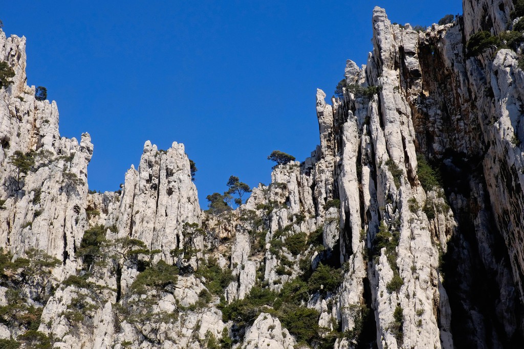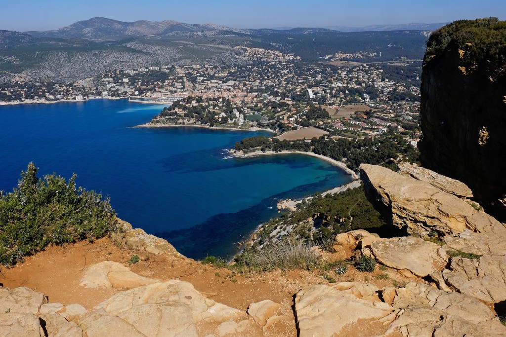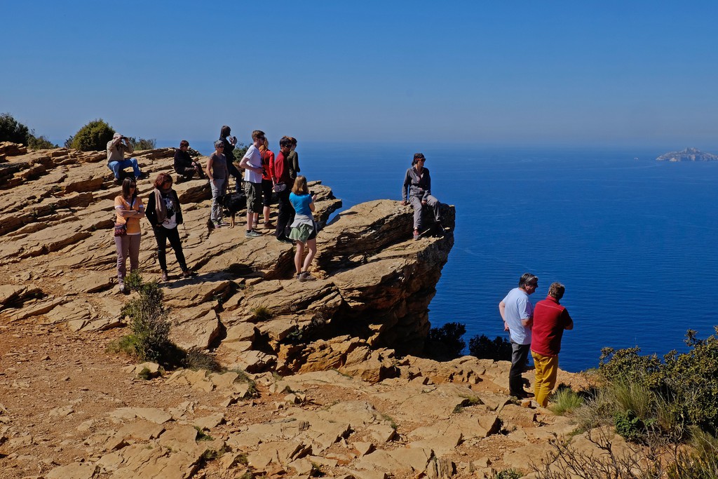 Wir verlassen Cassis über die Route des Crêtes. Es ist eine malerische, schmale und kurvenreiche Küstenstrasse von Cassis nach La Ciotat. Die Strecke führt entlang der Falaises (Steilküste) hinauf zum Cap Canaille (mit 362 Meter über dem Meer die höchste Klippe Frankreichs) und weiter zum Grande Tête (399 m). Die Strecke ist insgesamt etwa 15 Kilometer lang und bietet einige Parkmöglichkeiten an den Hightlights.