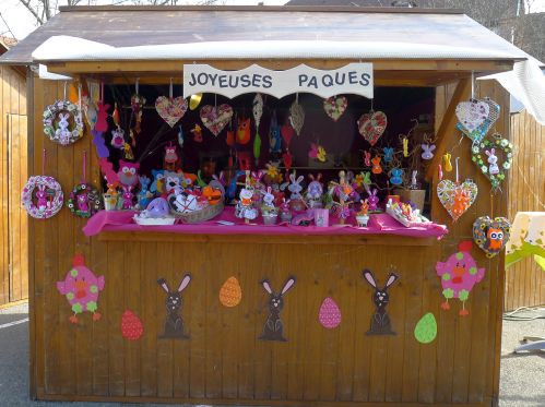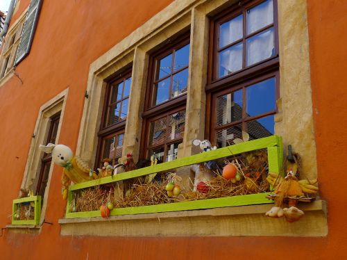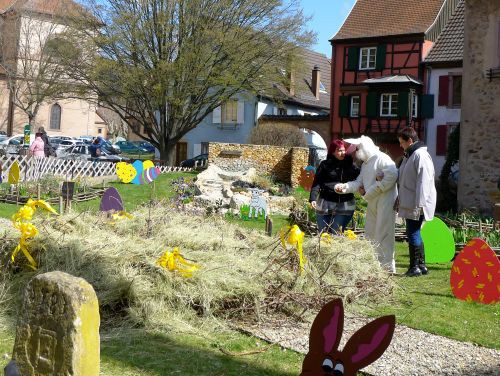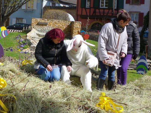 Wir nutzen das Wetter aus und gehn ins österlich geschmückte Örtchen, und sehen sogar einen Osterhasen.