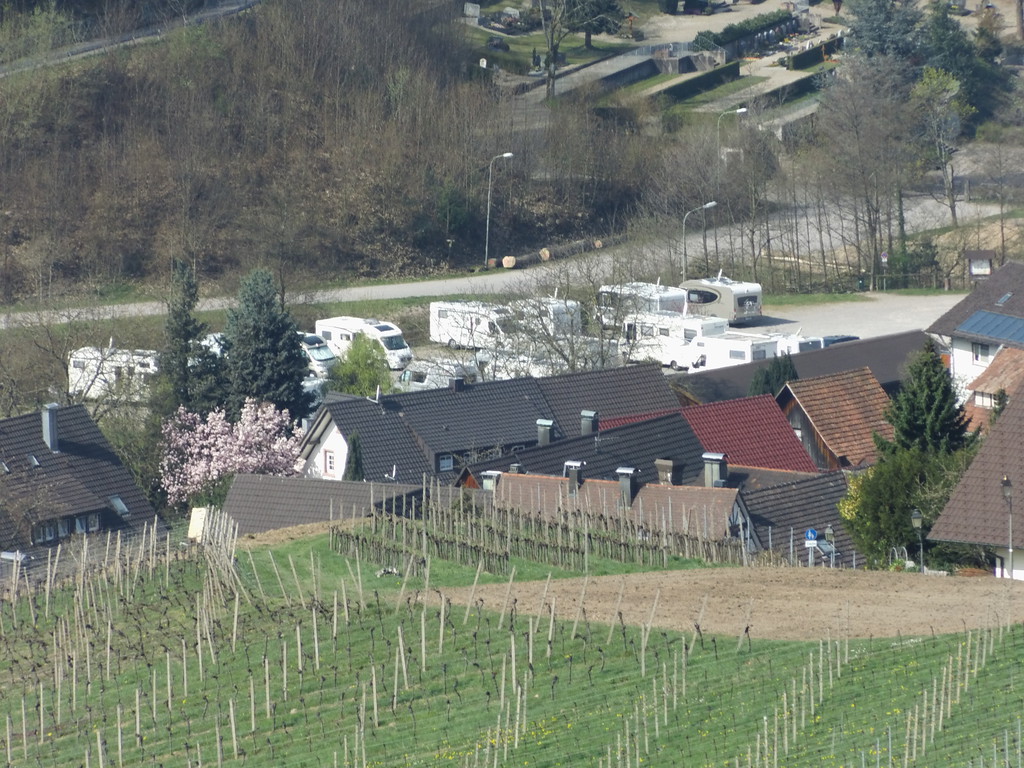 Wir fahren weiter nach Ihringen, dem angeblich wärmsten Ort Deutschlands, denn auch Bad Krozingen ist hoffnungslos überbelegt, auch der PKW-Parkplatz. Nun stehen wir hier vorm Campingplatz,