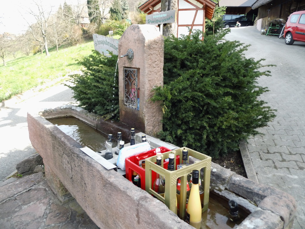 Wir sind auf dem Bild leider nicht drauf. Da haben wir uns verpasst. Die Schnapsbrunnentour haben wir noch aufm Zettel, denn wir fahren mit Sicherheit bald mal wieder in die Gegend. Uns wars zu warm dafür. Wir waren leider auch nicht essen in Kappelrodeck bzw. Waldulm, obwohl es dort sehr lecker sein soll, weil Carl noch keine Restauranttauglichkeitsprüfung hat. Er verbellt jeden erst mal, der an unsern Tisch kommt, weil wir bisher kaum Gelegenheit zum Üben hatten. Aber bis zum Sommer kriegen wir das hin.