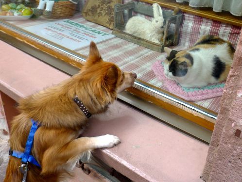zwei Füchse treffen sich und gucken sich erstaunt an, und wir beschließen dann, dass wir auf dem engen Stellplatz hier nicht bleiben, sondern nach Kaysersberg fahren.