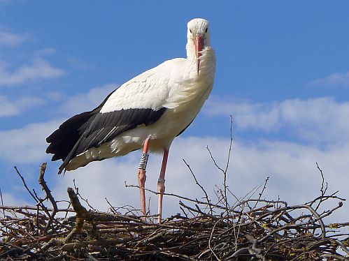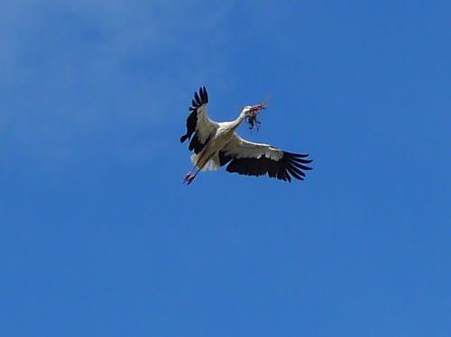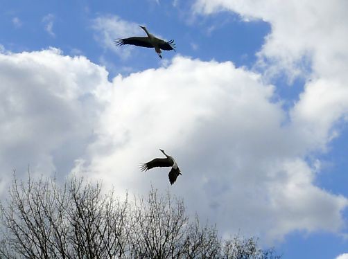 Hier fliegen die Störche dicht über unsre Köpfe und landen direkt neben uns, und versetzen dabei unsern kleinen Carl in Angst und Schrecken. Er kennt bisher ja nur Tauben, Krähen und Elstern, und die würde er am liebsten fangen.